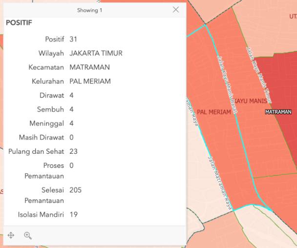 Tangkapan layar [screen shot] Kelurahan Kayu Manis dan Pal Meriam. Sumber: corona.jakarta.go.id