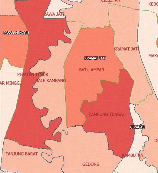Tangkapan layar [screen shot] Kelurahan Balekambang dan sekitarnya. Sumber: corona.jakarta.go.id
