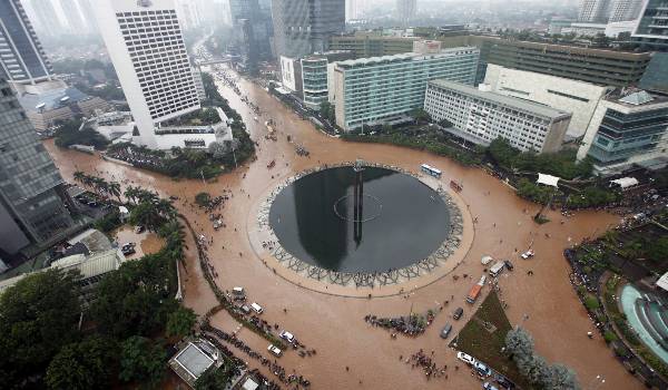 tumpah-tumpah hujan hingga ke jalan-jalan